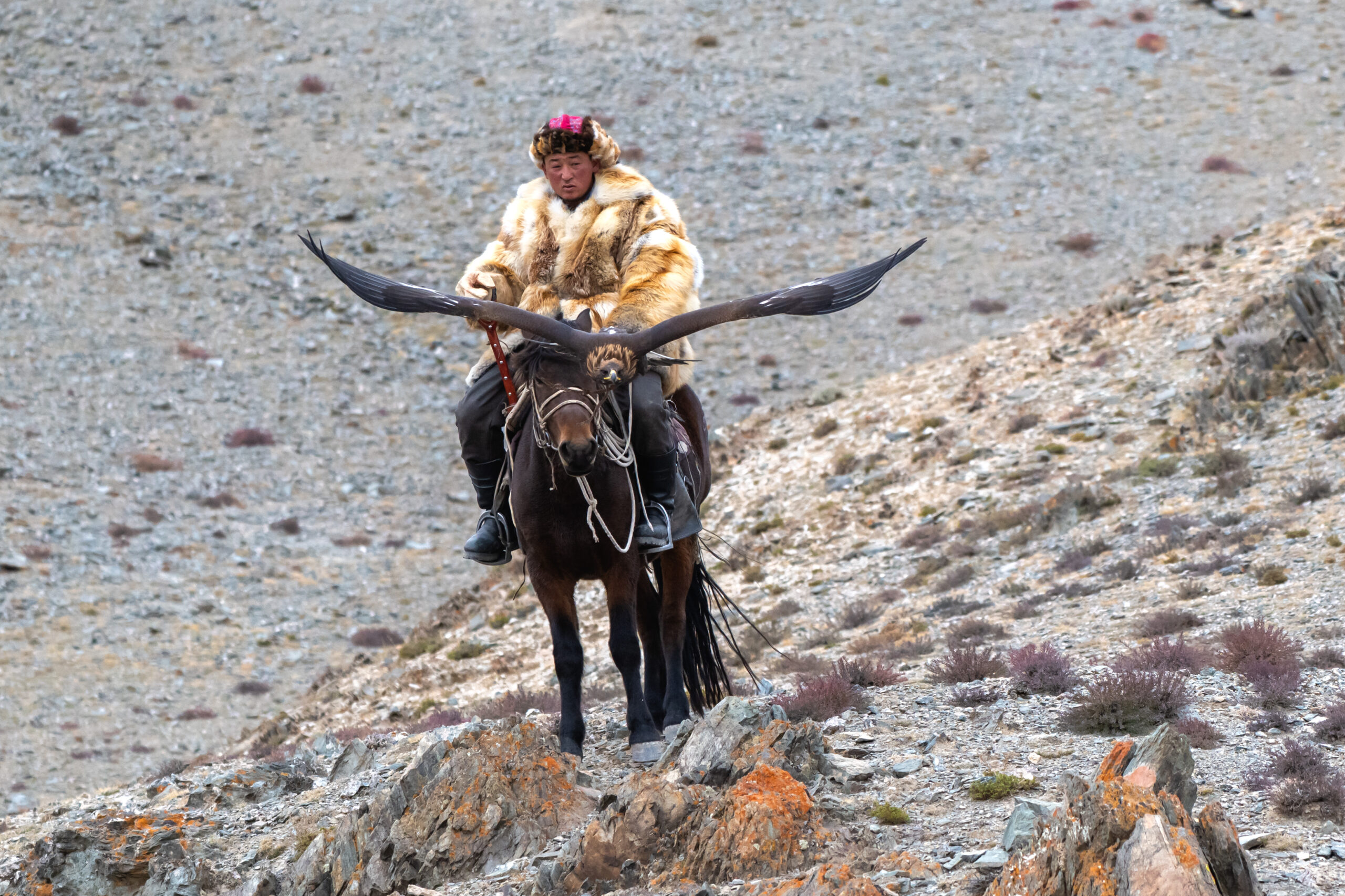 Today after breakfast we will board the domestic flight from Ulaanbaatar to Ulgii city (the most western province of Mongolia). After 3 hours flight we arrive to Ulgii city followed by a few more hours of drive to the Eagle Hunter’s family where you will spend next few days exploring the nomadic culture and the ancient tradition of hunting with Golden Eagles. Overnight at South River Camp. B,L,D